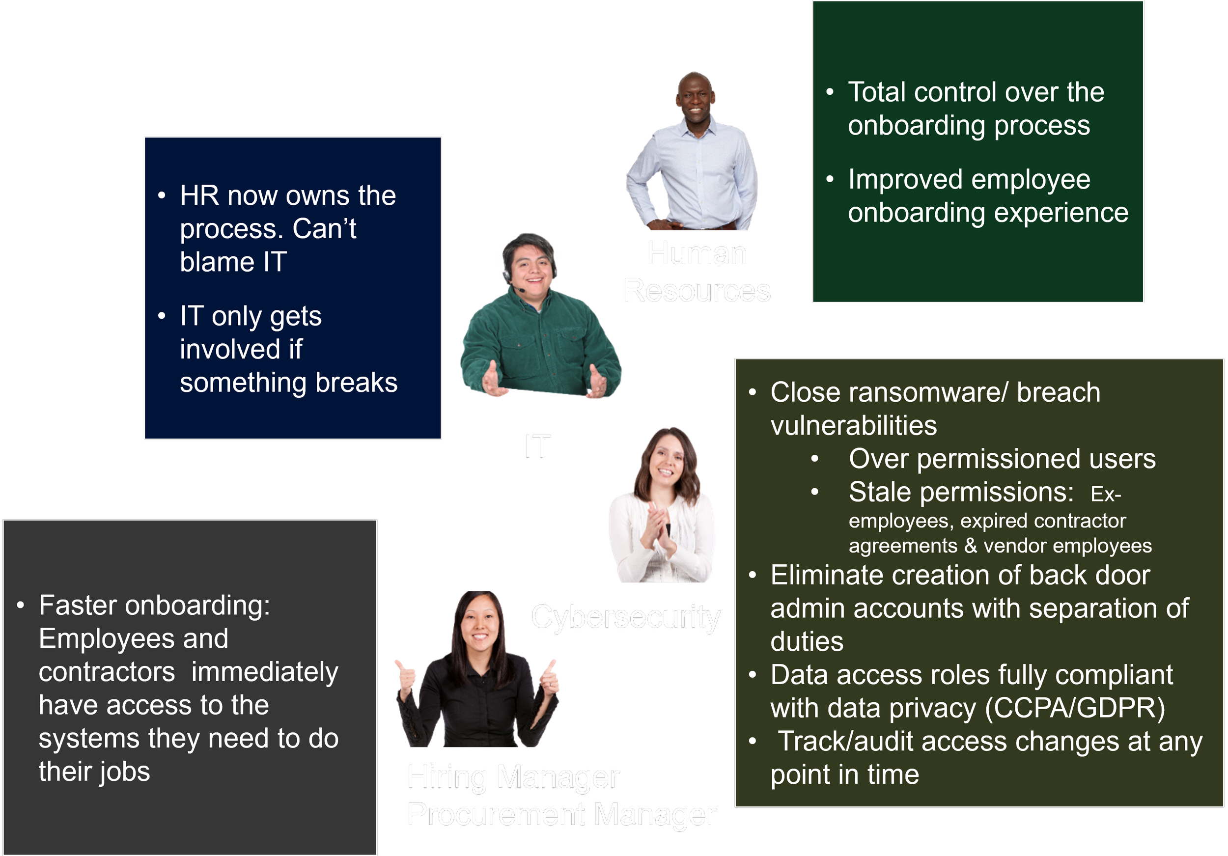 No more emails or service tickets for user onboarding, offboarding and role or status changes